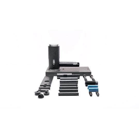 AKM tool kit includes barrel press kit, rivet tool, trigger guard rivet tool, and trunnion hole drilling fixture. AK Builder MFG. Requires 1” ram 12 ton press to use.