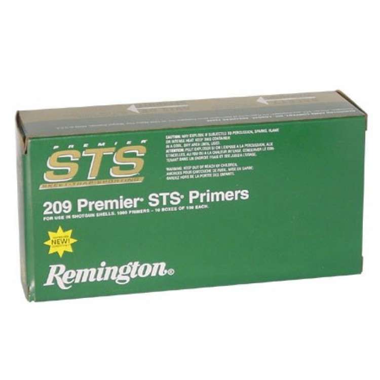 Buy 209 STS Primers at Factory Pricing. These Remington 209 STS Shotshell Primers are designed to give you reliable ignition each and every time. Used in a wide variety of applications and designed to meet expectations of both casual shooters and professionals alike. Gold Medal Match Grade ammunition is known for its precision and dependability. If you want accuracy and reliability then you want Remington B R primers.
